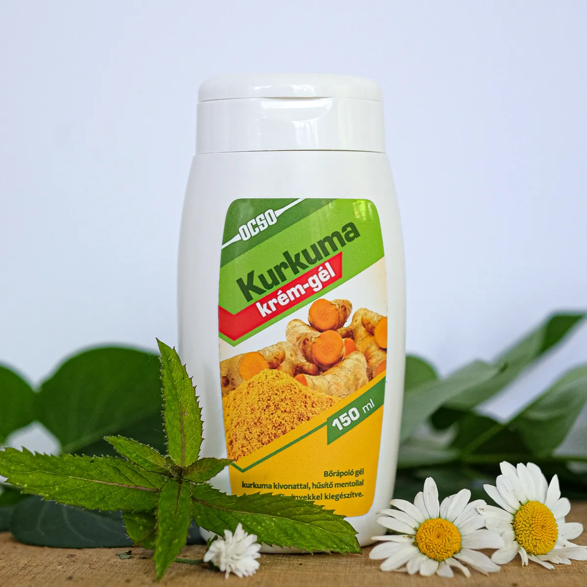 Bőrápoló krém-gél kurkuma kivonattal, hűsítő mentollal, gyógynövényekkel. Ajánljuk az ízületek környékének masszírozására.